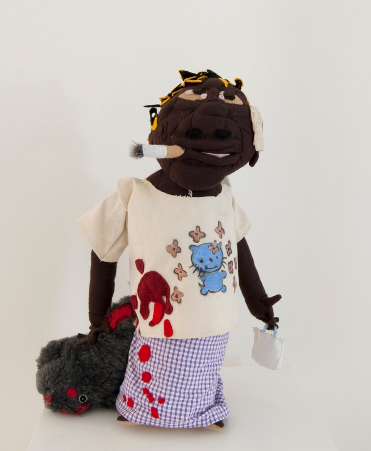 Three Tiwi women, three Hello Kitty bags and bits of hard to identify axed up native animal