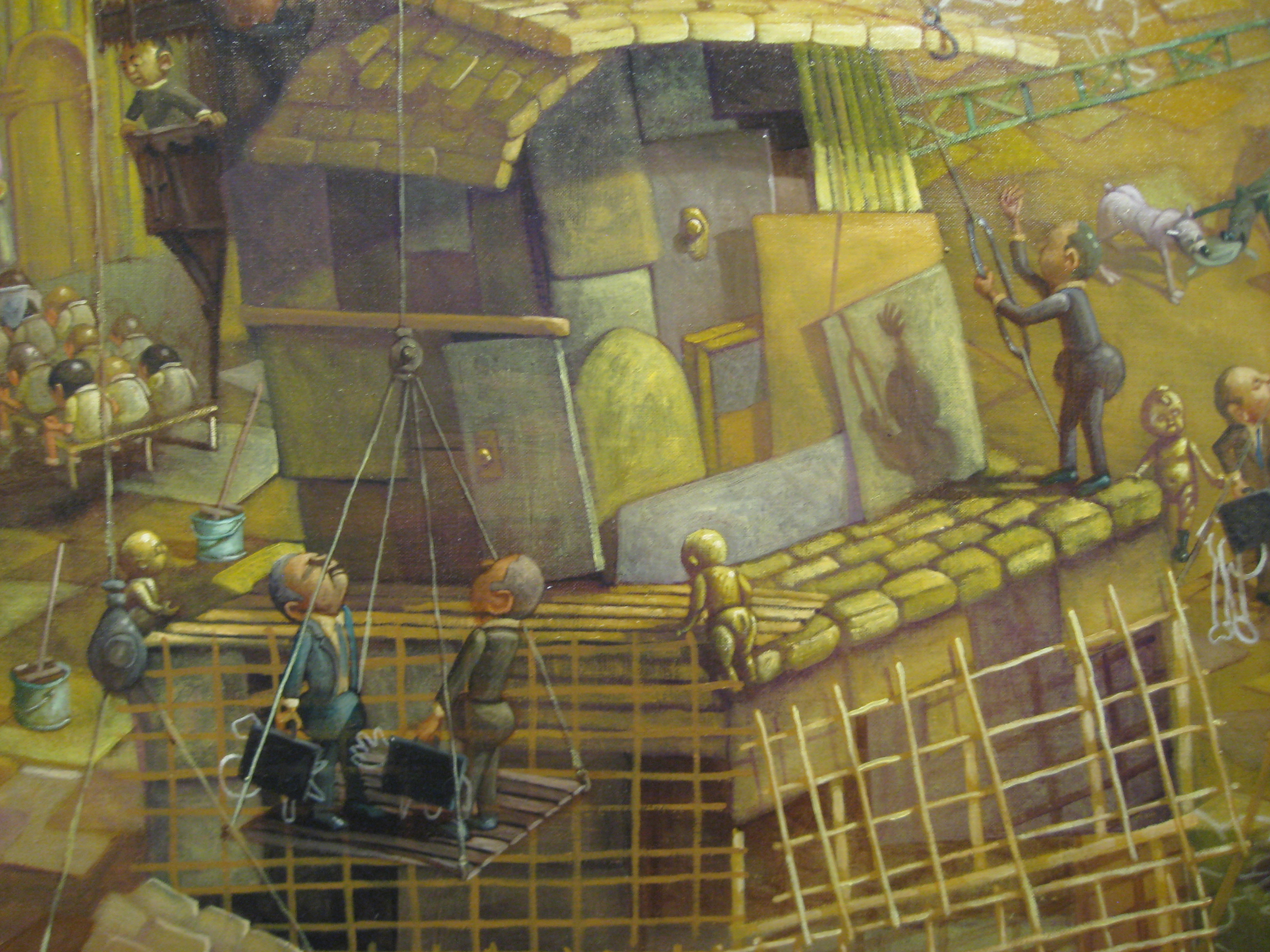 I had made a picture called ORPANAGES MAKE THE BEST SKYSCRAPERS it was about how the rise in public conservatism had mirrored with the rise of single mothers, absent fathers and public fatherlessness. Orphans – people without fathers were having their need to win affection/approval from a strong white male figure exploited by big corporations – skyscrapers.