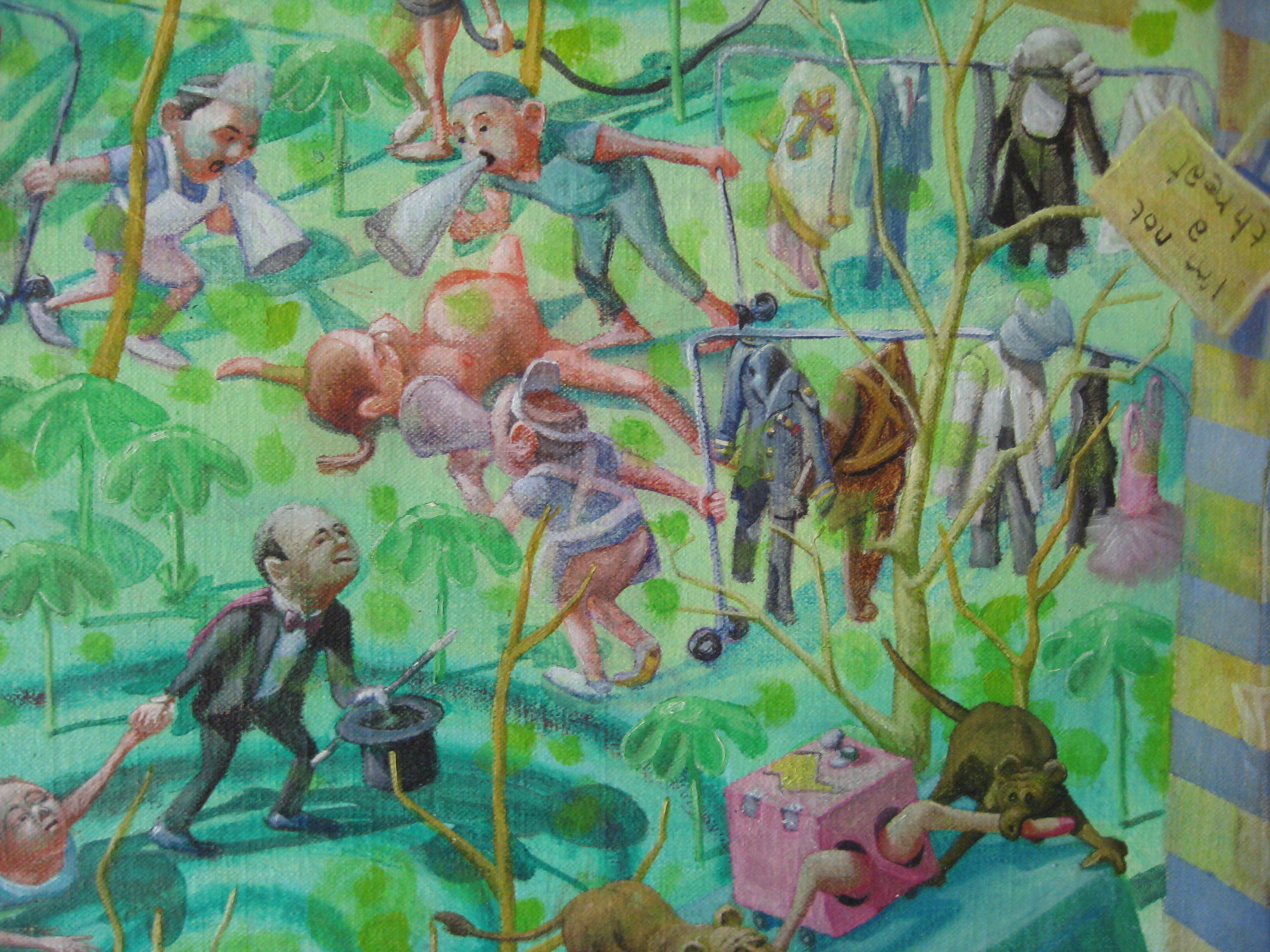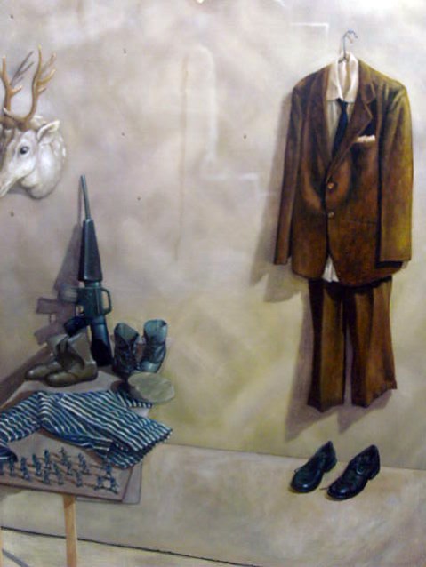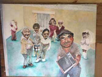I painted the repo man at art school, it’s a family portrait. As a child my family owned nothing everything was rented or on higher purchase. My father absent emotionally always and physically most of the time was an unreliable and dishonest money manager. My family faced having all our stuff reposessed regularly.