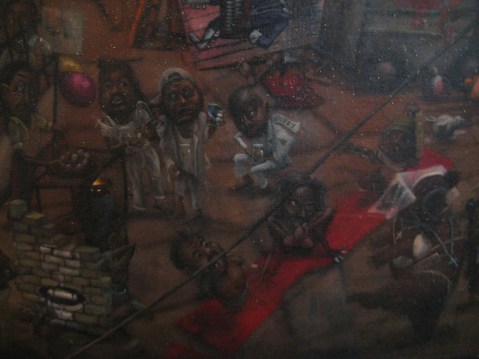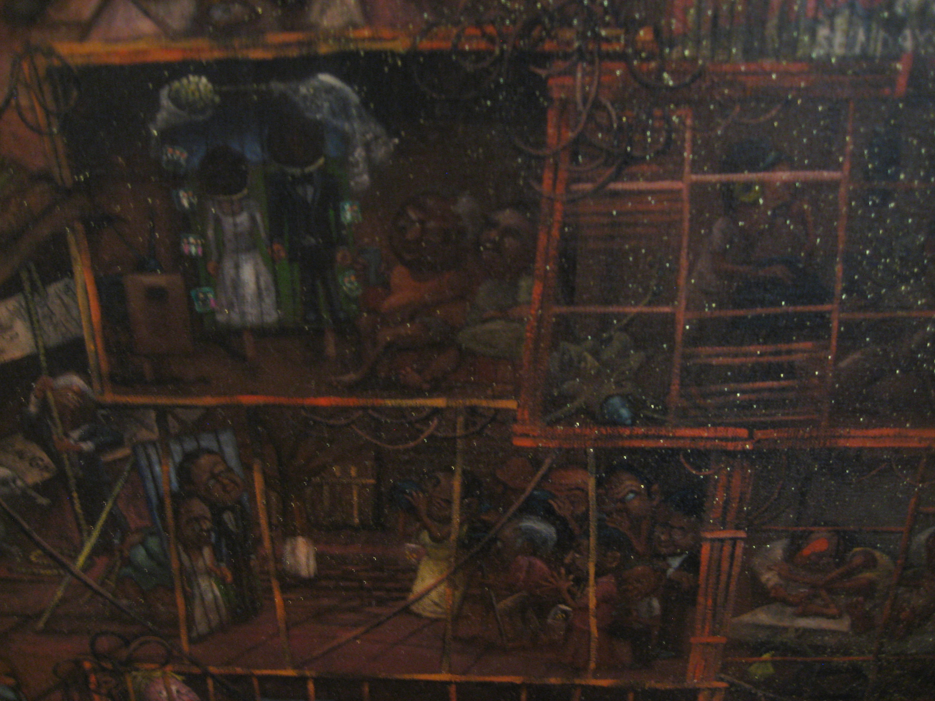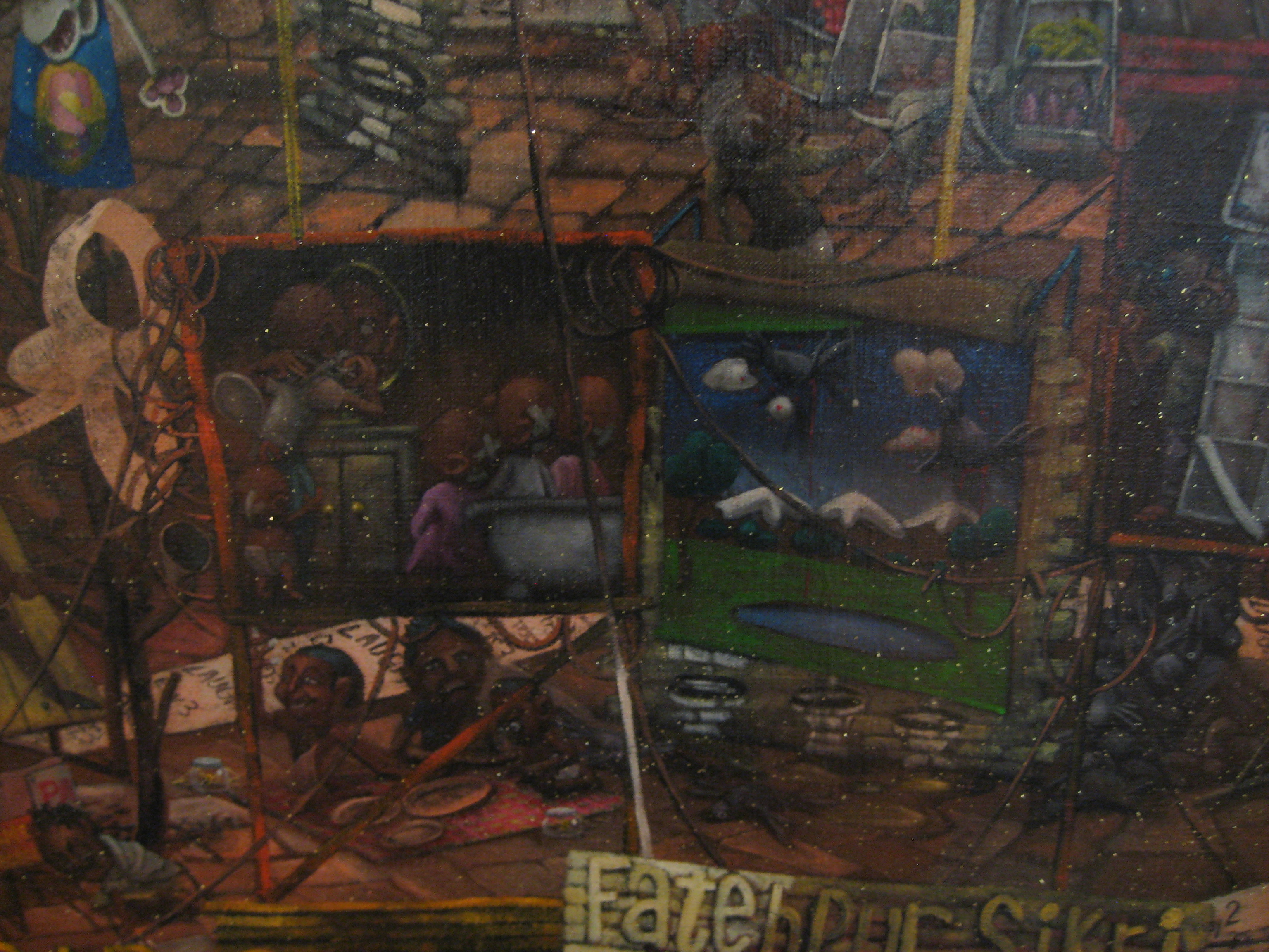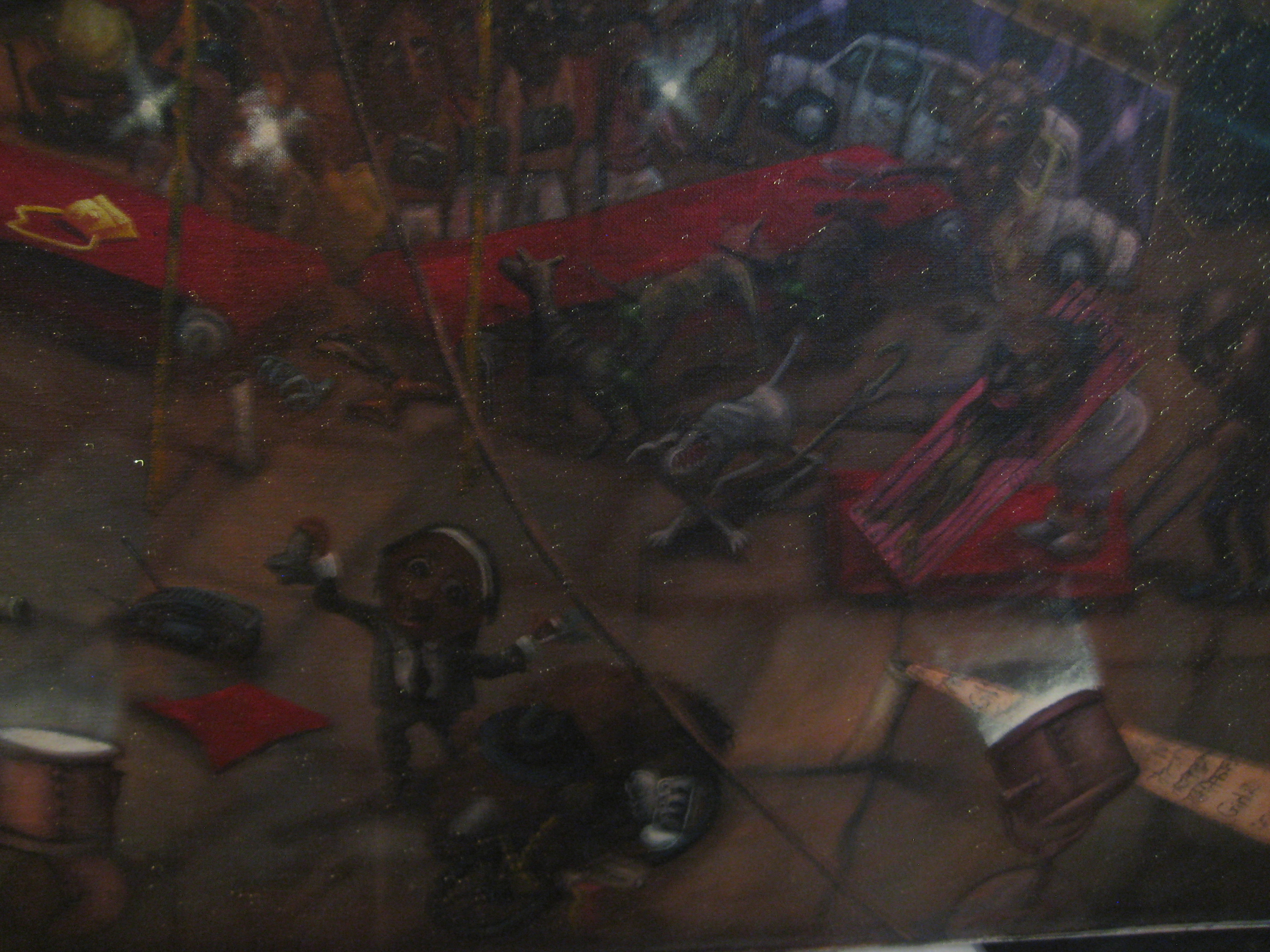 This painting is about the many star attractions in the world which are really miserable and under the control of the rats under the surface.
