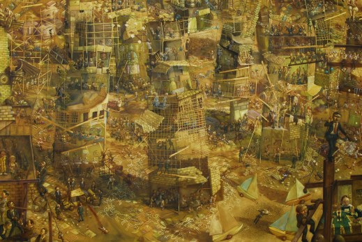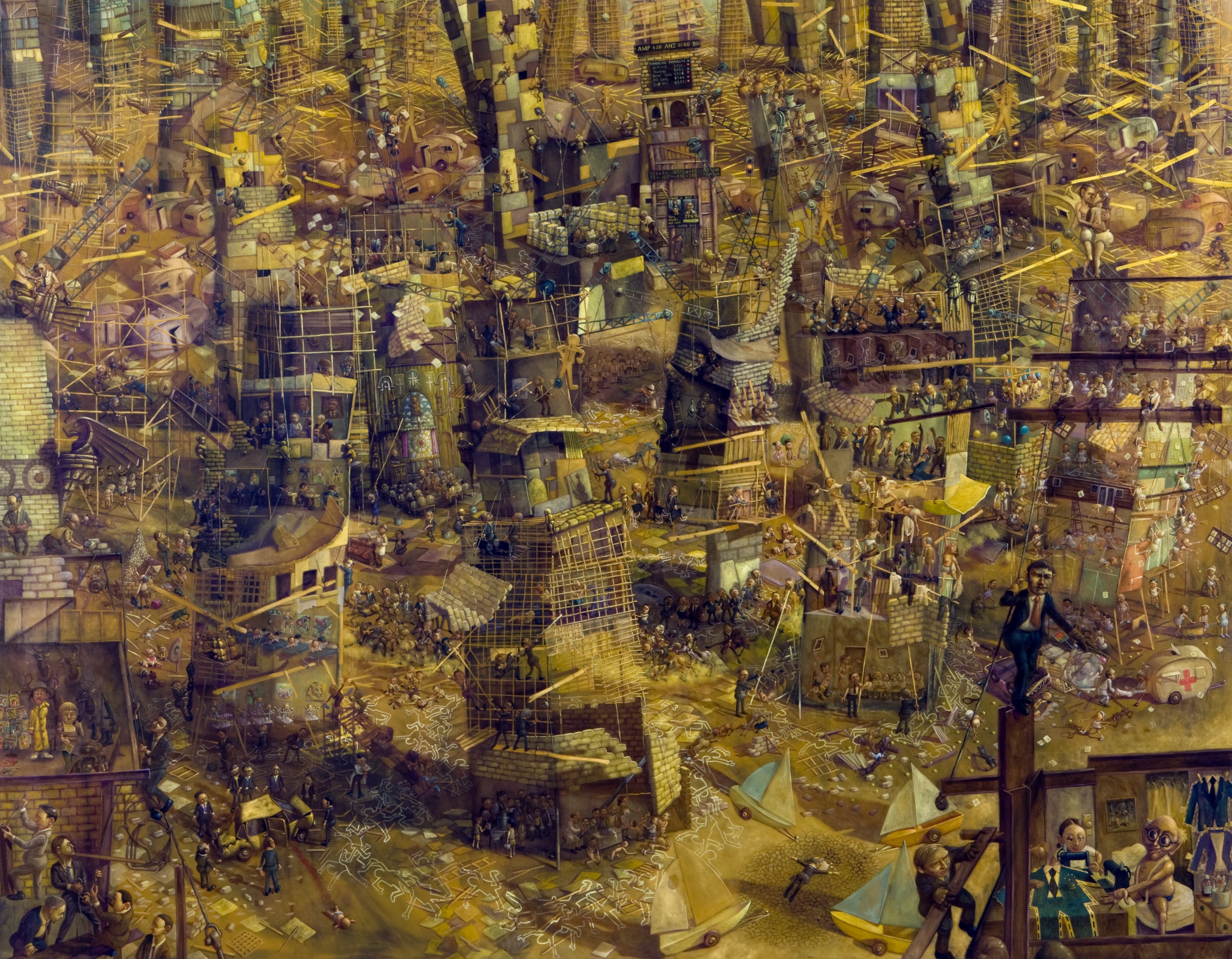 In these skyscrapers the elevators only go up. Not to strive to the top through work is to freefall to the bottom. Many workers carry their chalk drawings in their brief cases, and many psychiatrists are sent straight to the top of the skyscrapers to wait for the most successful workers.