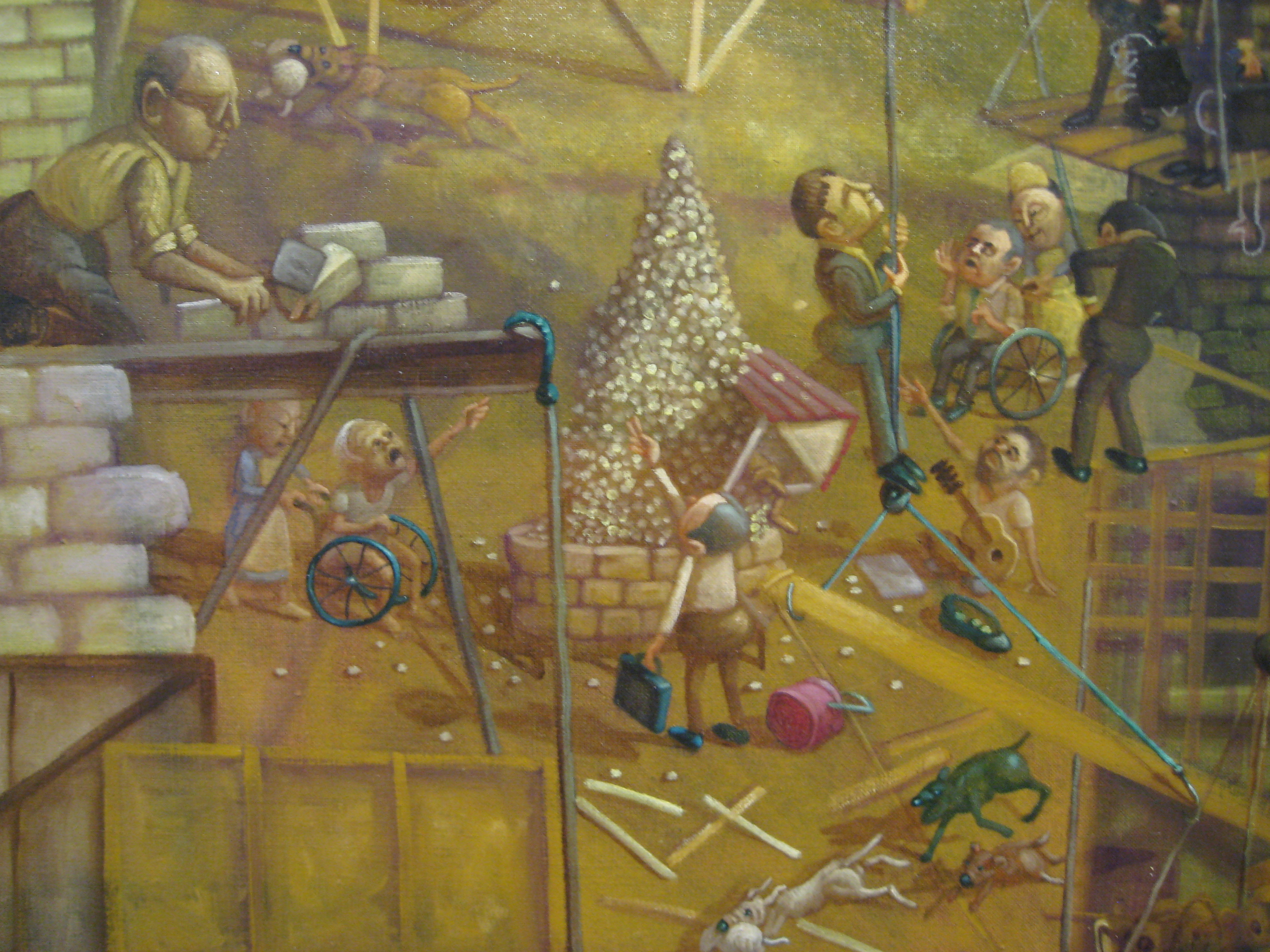 This painting is about the many star attractions in the world which are really miserable and under the control of the rats under the surface.